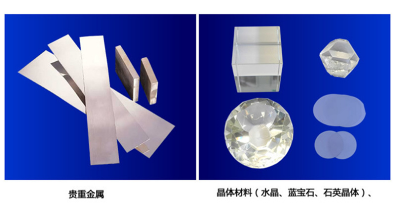 可用于切割玉石、玻璃、陶瓷、石墨、瑪瑙、紅寶石、藍寶石、亞克力、單晶硅、多晶硅、碳化硅、耐火材料、巖樣、復(fù)合材料、環(huán)氧板、鐵氧體等不導(dǎo)電材料的切片開方及直體異形的加工切割