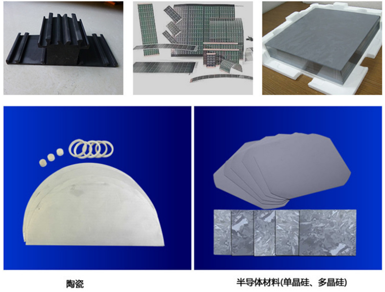 可用于脆硬材料的異形和切片加工,如:藍寶石、單晶硅、多晶硅、氧化鋁、陶瓷、寶石玉等材料。